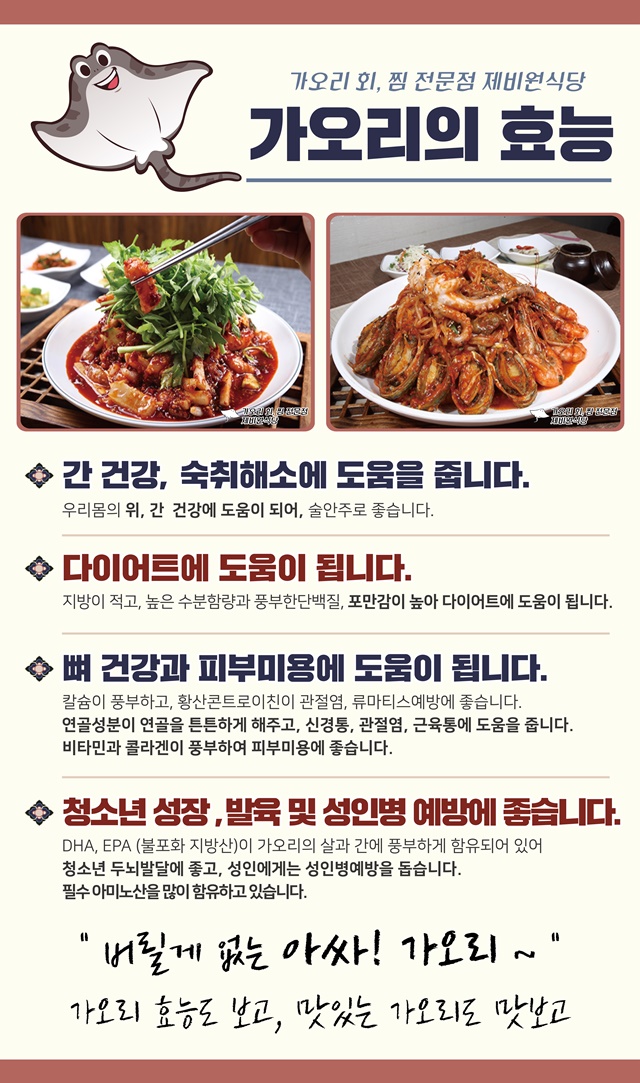 가오리회 · 찜 전문점 싱싱가오리 - 제비원식당 입니다.