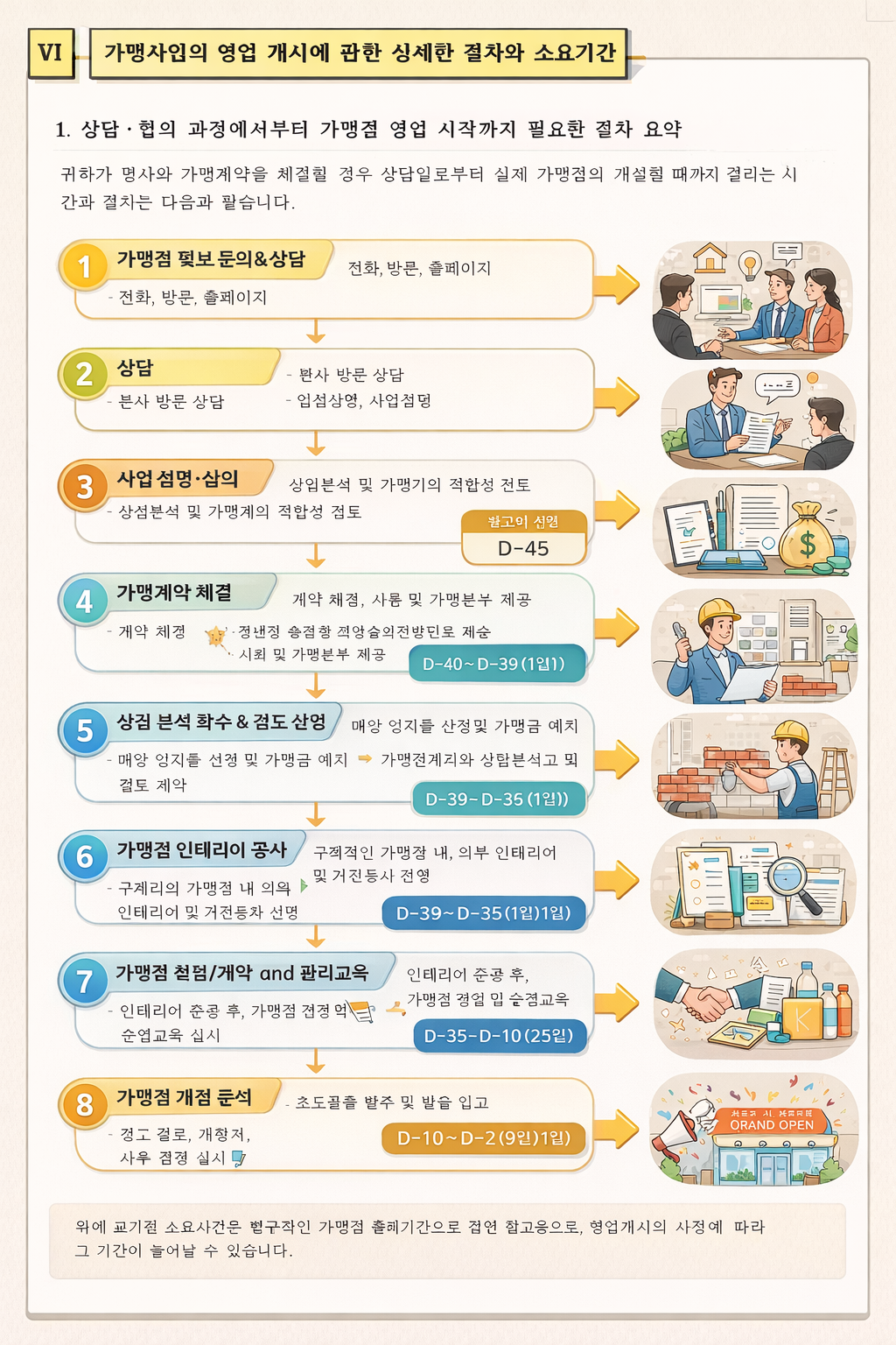 보통 가맹 계약 → 교육 → 인테리어 → 오픈까지